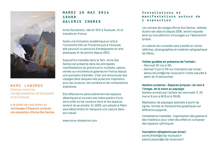 Galerie Ingres – Canopé de Toulouse 68 Bd de Strasbourg- 31000 Toulouse Tel : 05 61 99 48 48 Métro ligne B – Station Jeanne d’Arc Bus 15/16/29 – Concorde
